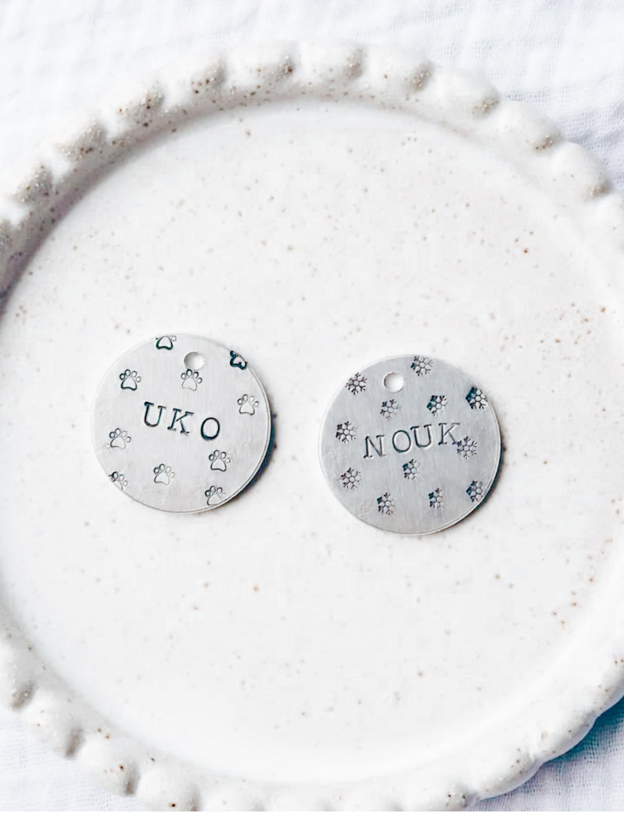 Cette médaille est idéale pour les chiens coquets. Fabriquée à la main en métal argenté, elle ajoutera de l'éclat et du style à votre animal de compagnie. Avec sa forme ronde est élégante et son design unique, votre chien sera fier de porter cette médaille comme un accessoire de mode.
