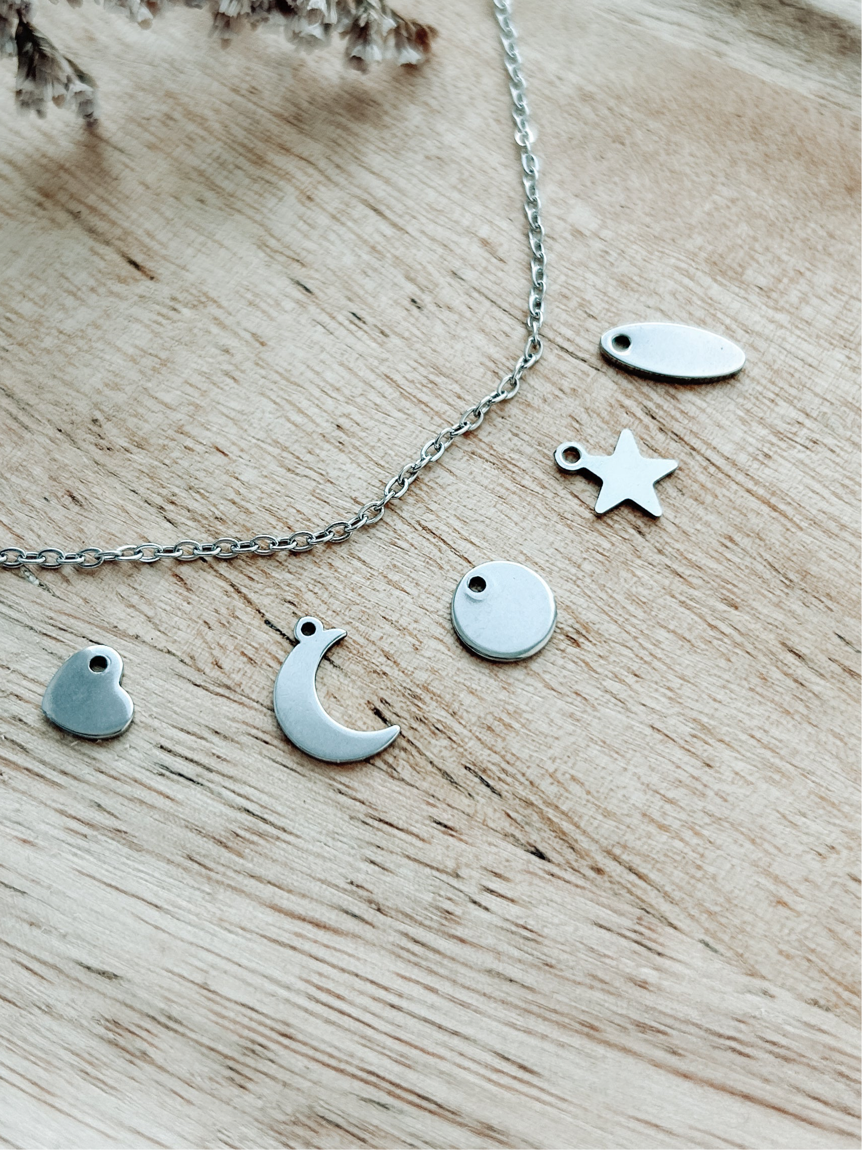 Personnalisez votre bijou avec notre pendentif facile à rajouter. Ajoutez-en un ou plusieurs pour un look unique et élégant. Rendez votre collier ou bague encore plus spécial en y ajoutant des pendentifs en forme de coeur, étoile …